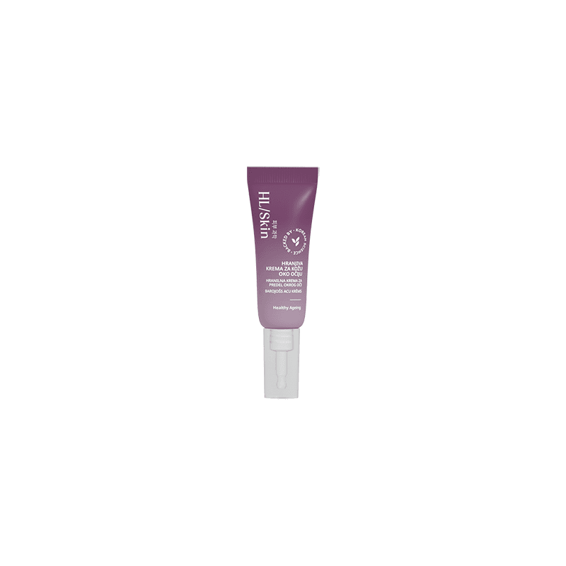 HL/SKIN hranilna krema za predel okrog oči je zasnovana za nego občutljive kože okoli oči, ki potrebuje dodatno hidracijo in hranila. Njena bogata, a prijetna tekstura se lepo razporedi po koži ter se hitro vpije, brez težkega občutka.